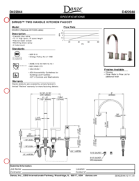 Instrukcje obsługi i podręczniki użytkownika dla Kuchnia Danze D422044 - Spec Sheets.
